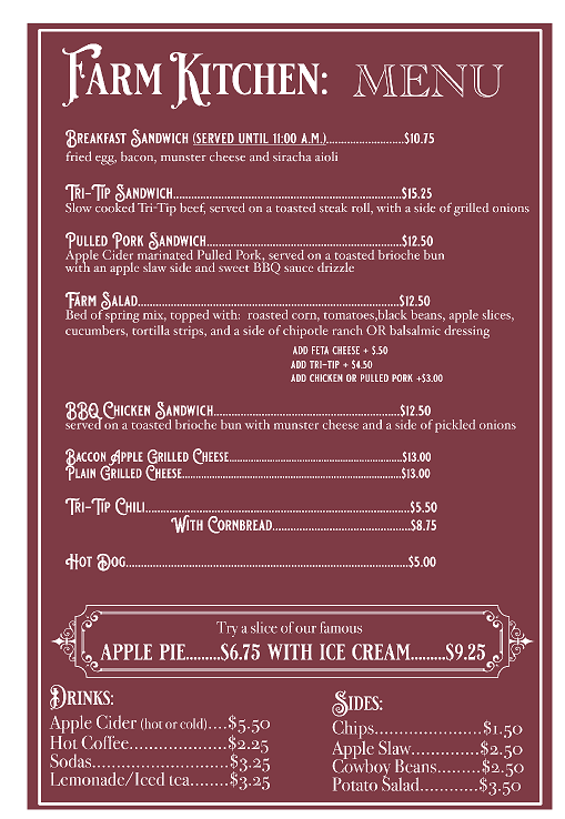 *All prices subject to change. This menu is intended to be reference guide to our offerings and as a convenience to our customers. It does not guarantee that we will have in stock any of these items. All items are subject to availability.